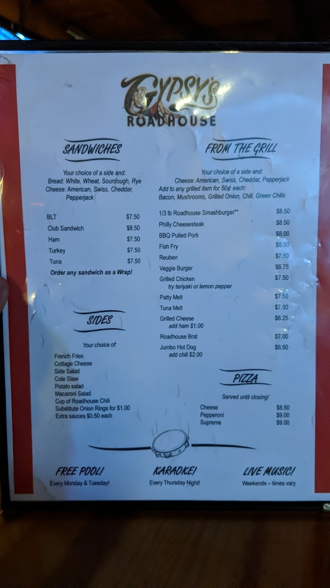 Whether you’re in for a drink, some karaoke, or just a great meal, Gypsy's Roadhouse promises a delightful experience.